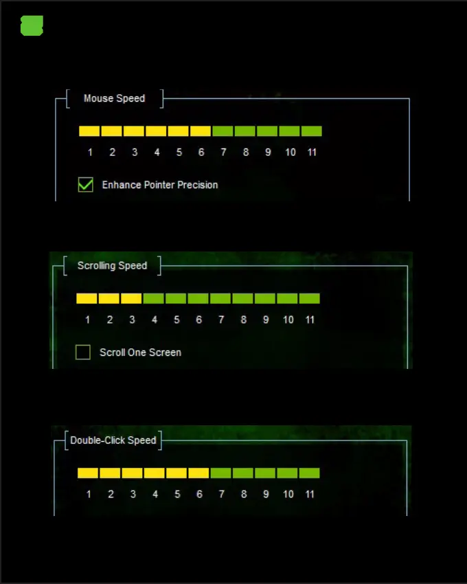 U Miš Speed možete podesiti brzinu miša klikom na skali od 1 do 11, sa 1 sporija