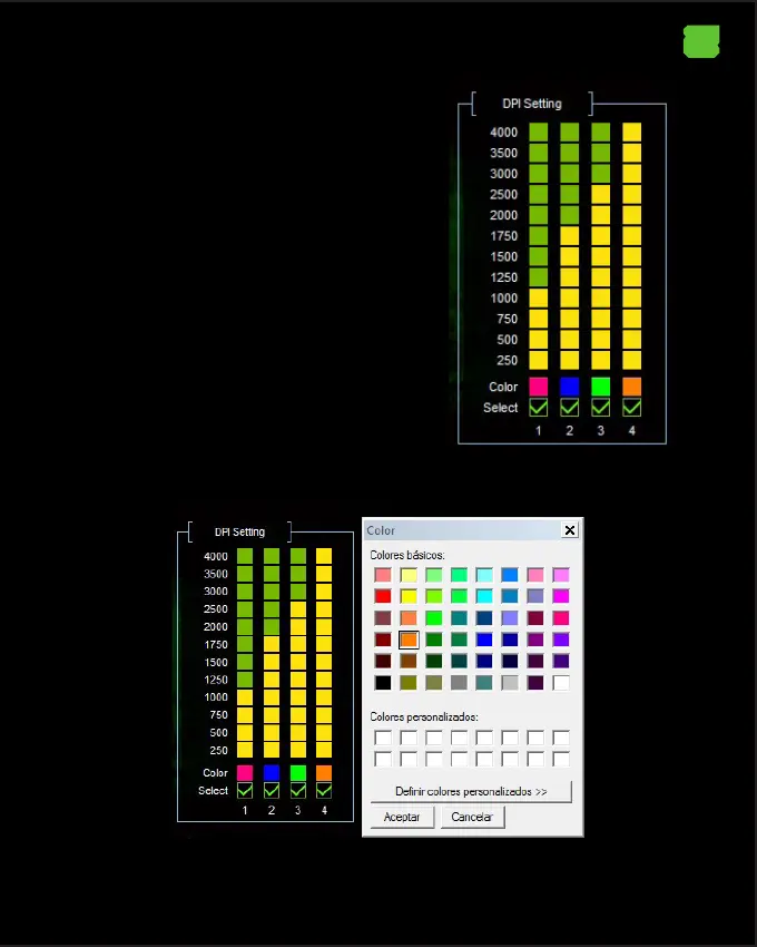 4. DPI výber a Backlight Color (DPI Setting)