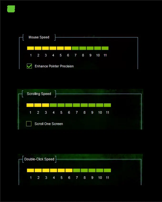 Σε Scrolling Speed μπορείτε να ρυθμίσετε την ταχύτητα κύλισης του ποντικιού,