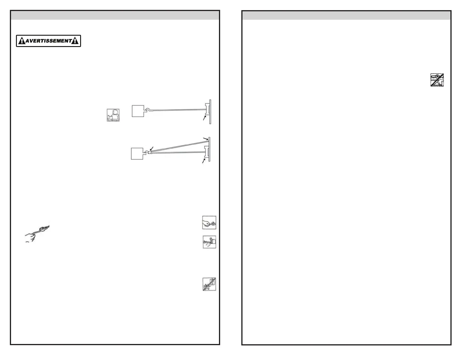 TRESSES ROMPUES DOIT ÊTRE REMPLACÉ IMMÉDIATEMENT. Inspectez régulièrement les installations