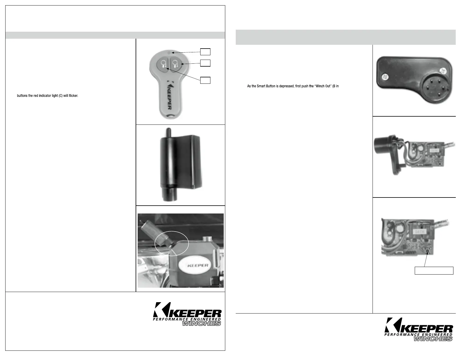 1. To activate the sender PRESS BOTH the “Winch In” (A) (Arrow towards the winch