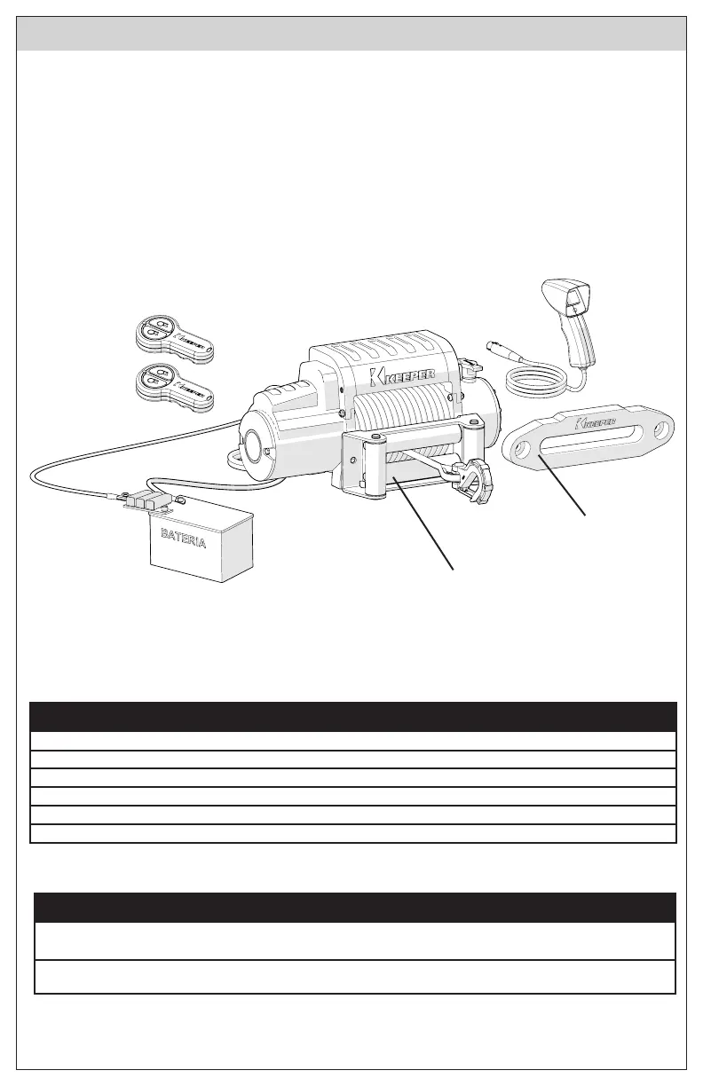 Este cabrestante KEEPER®está equipado con un motor de enrollamiento serial de 12 Voltios CD y está dis-