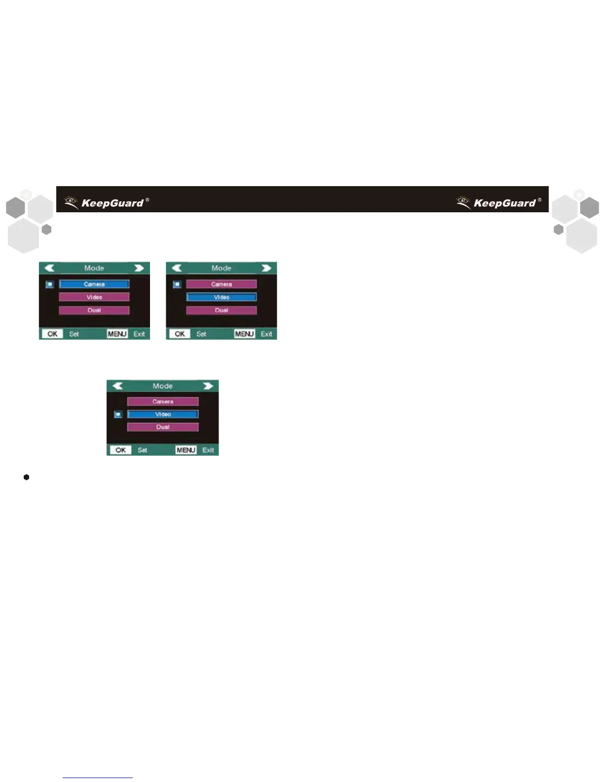 (still photos) to "Video" (shoot video clips), press the DOWN key