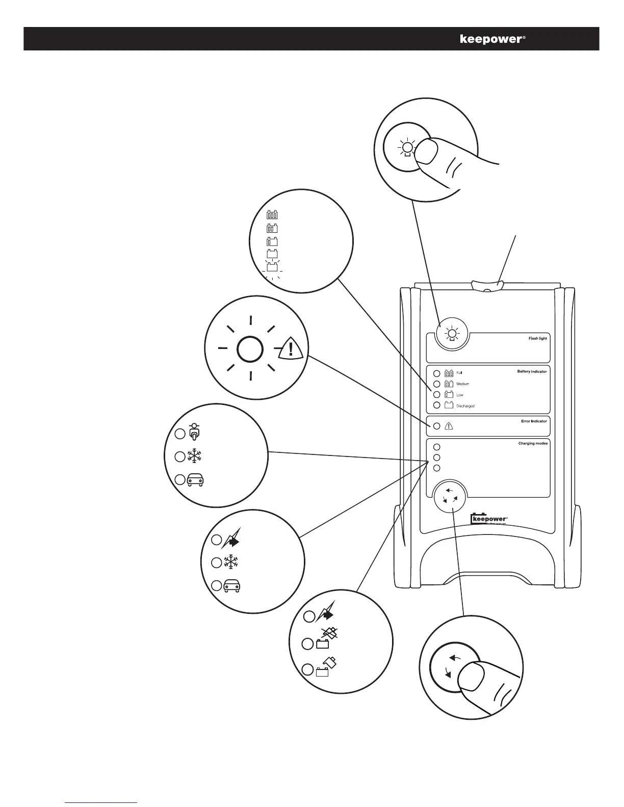 Keepower XL-Con - Battery Indicator; Error Indicator; Charging Mode; Selection Button