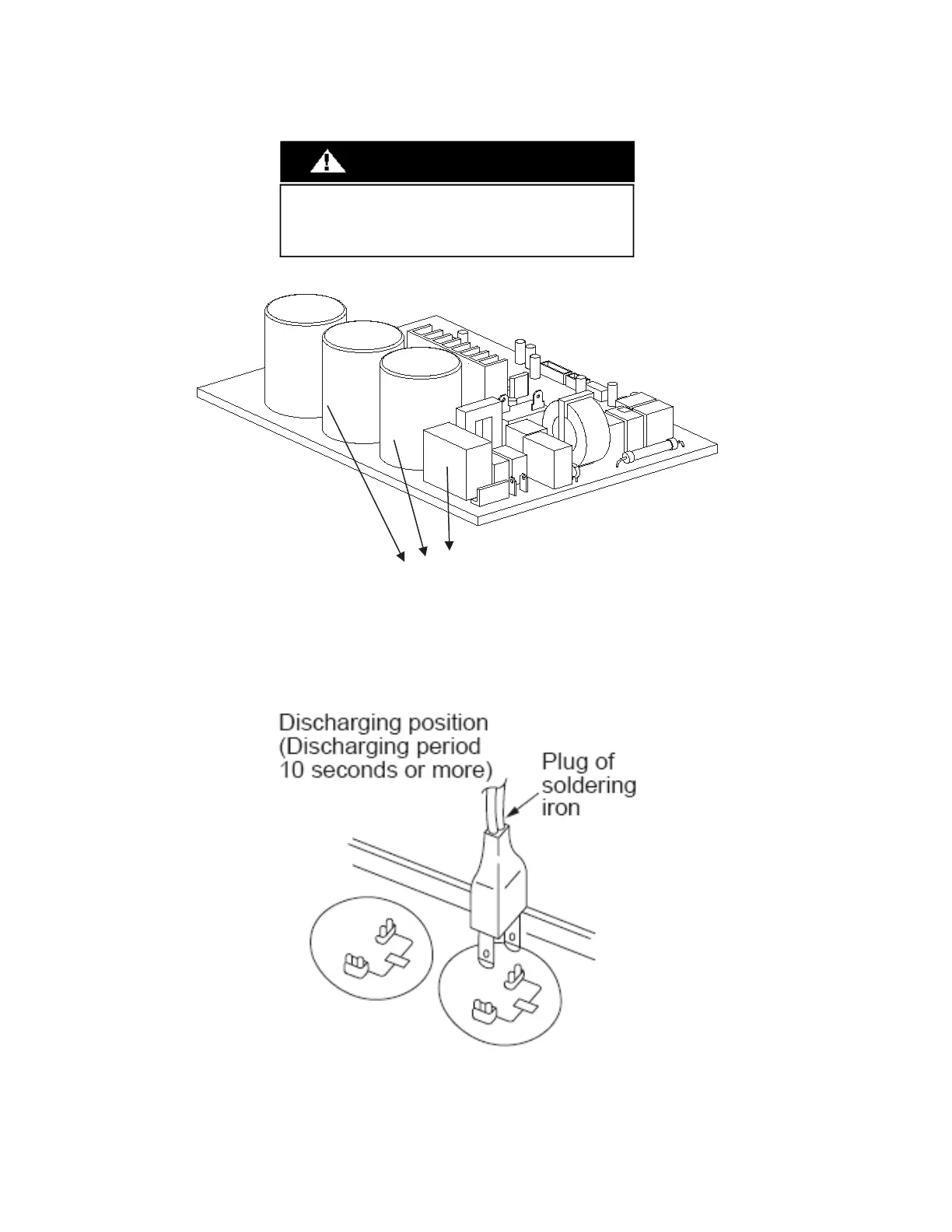 For other models, please connect discharge resistance (approximately 100 40W) or a soldering iron (plug) between the +, - terminals of the