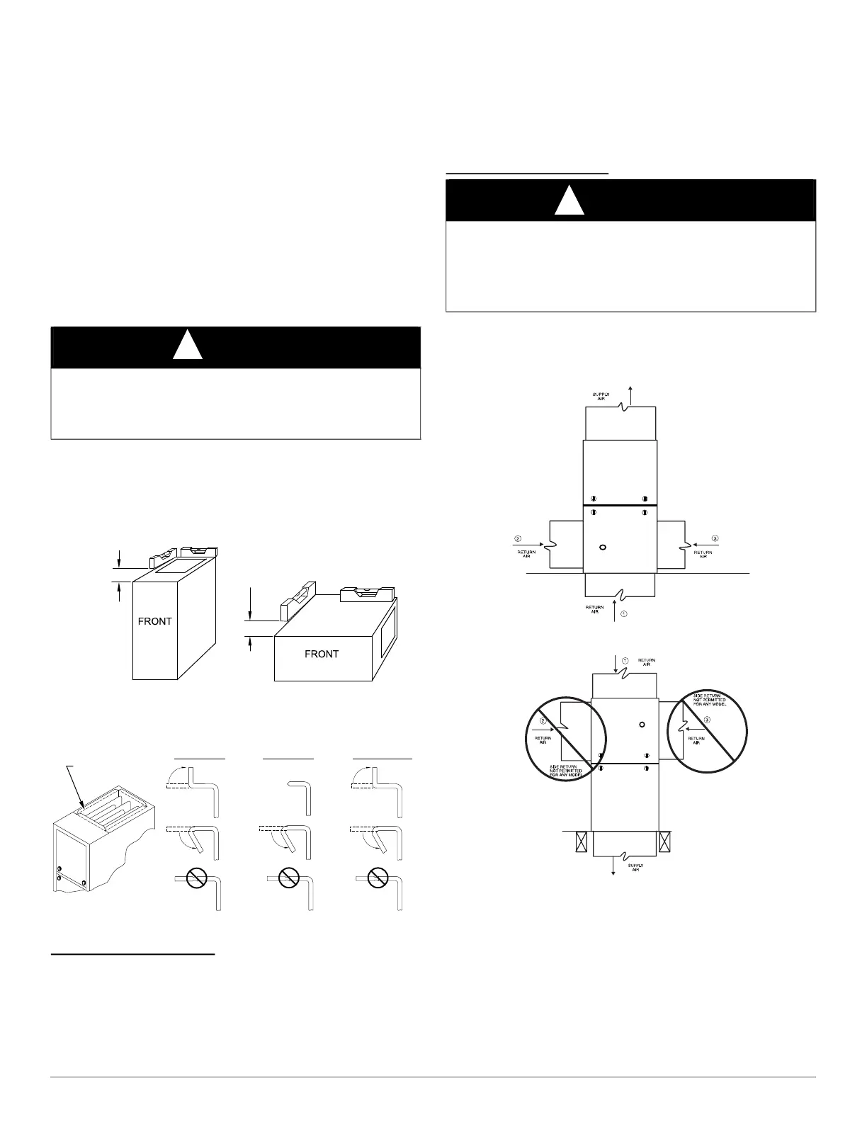 The return-air duct must be connected to bottom, sides (left or right), or a