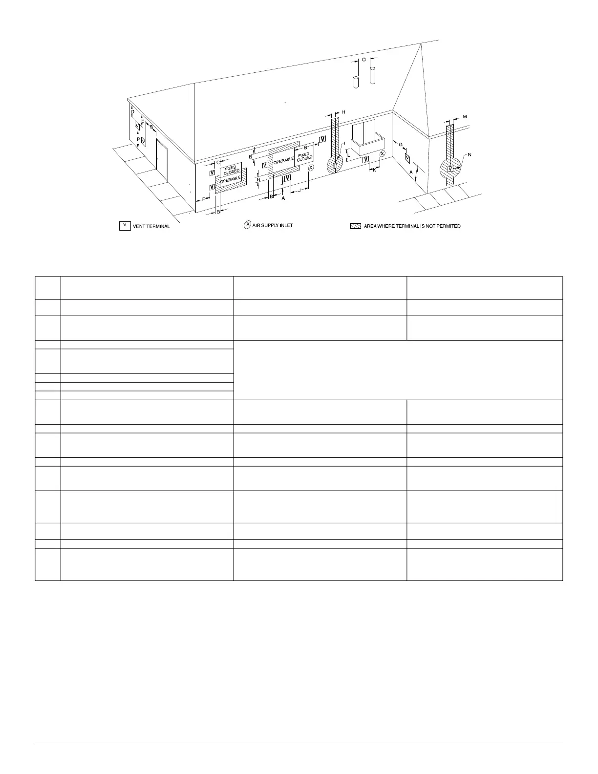 K Clearance to a mechanical air supply inlet 6 ft. (1.8 M) 3ft. (.9 M) above if within 10 ft. (3 M) horizontally