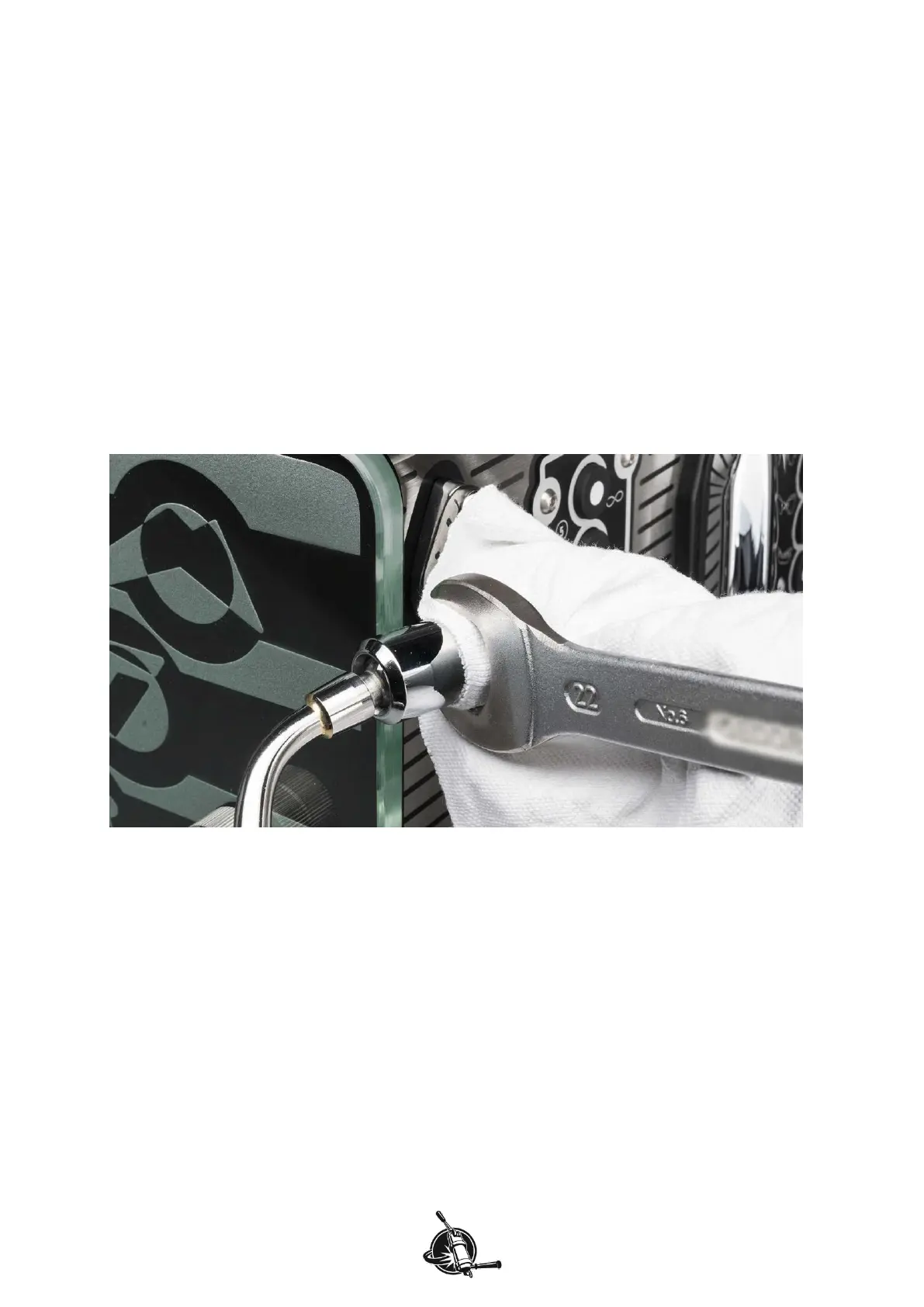 Figure M 11. Use 22 mm spanner to loosen conical nut on steam valve (or hot water fitting). The rag is