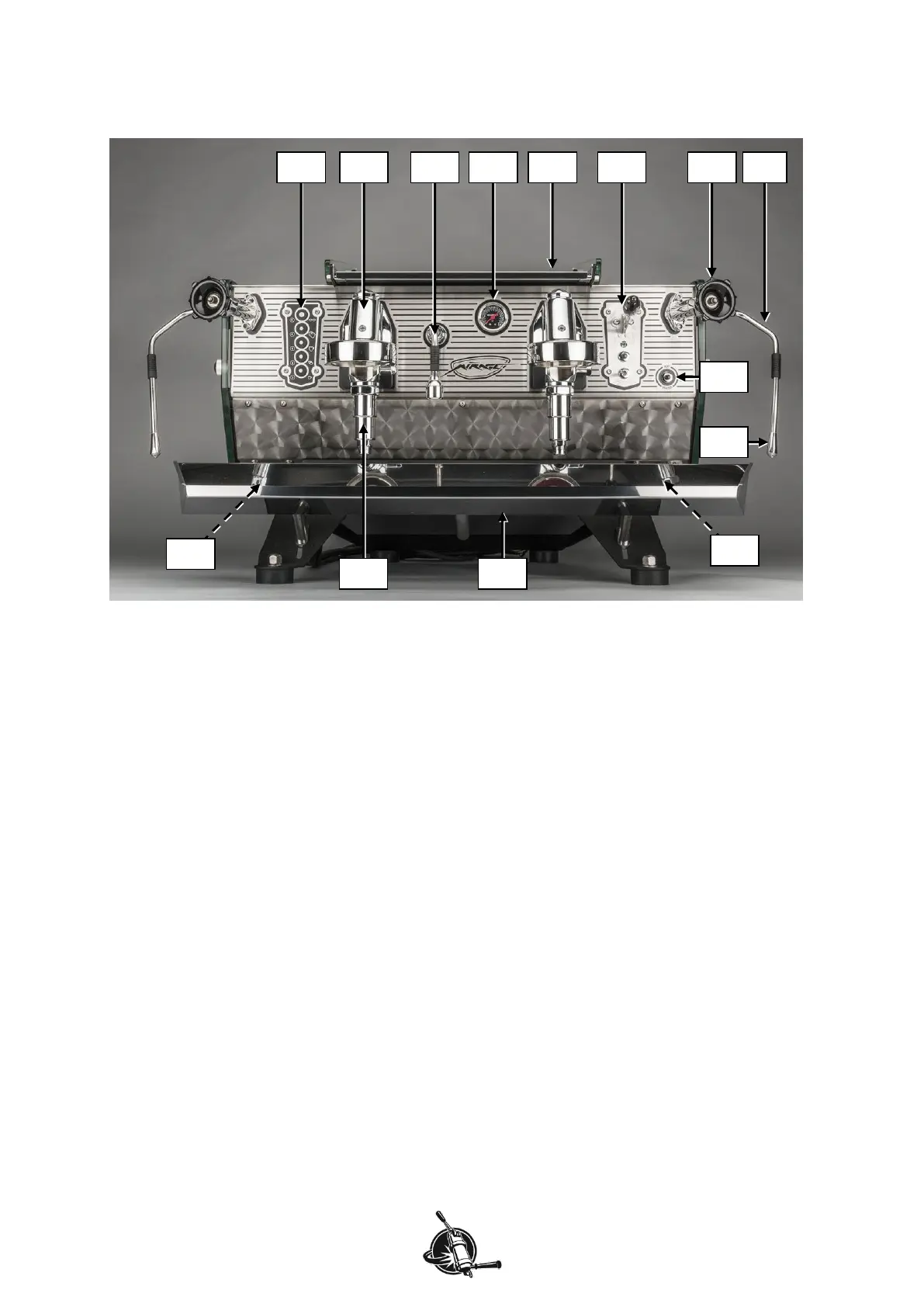 Figure W 1. Showing main operational parts of the Mirage Duette equipped with optional pre-infusion