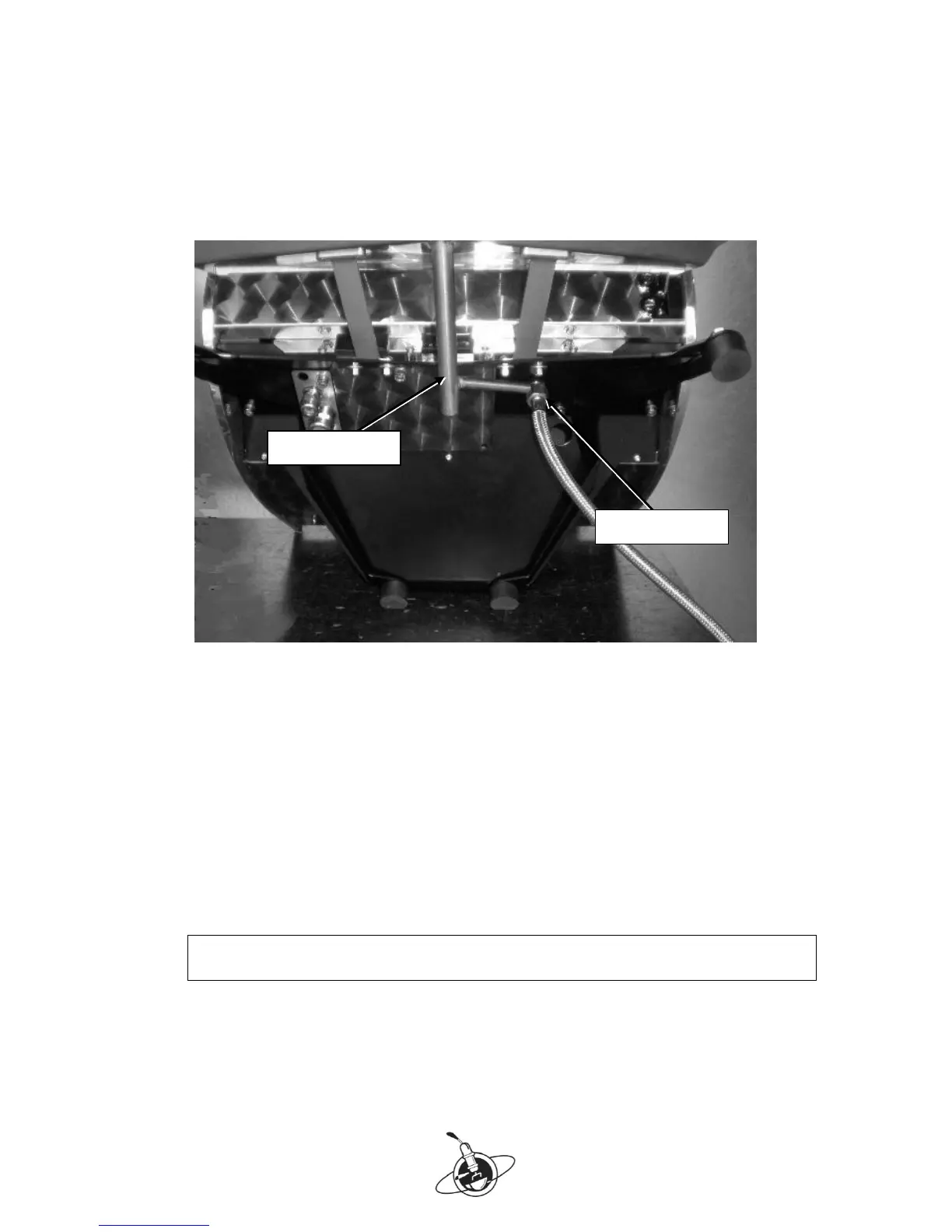 Figure 4. Speedster is tilted on its back, water supply is connected. Discharge pipe is