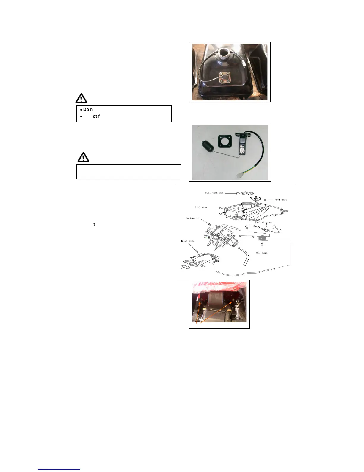 Do not fill out too much fuel to fuel tank.