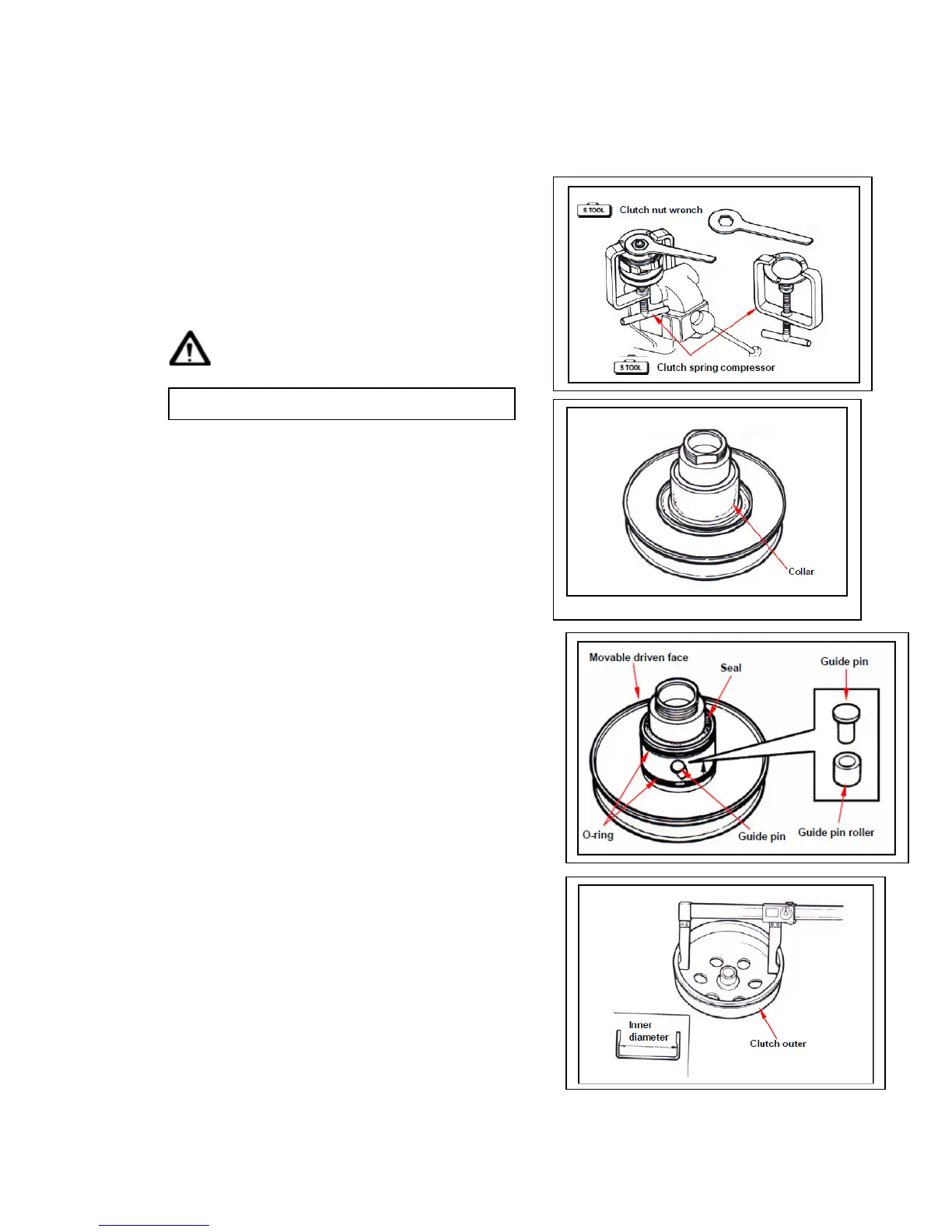 Remove drive belt, clutch outer and driven pulley.
