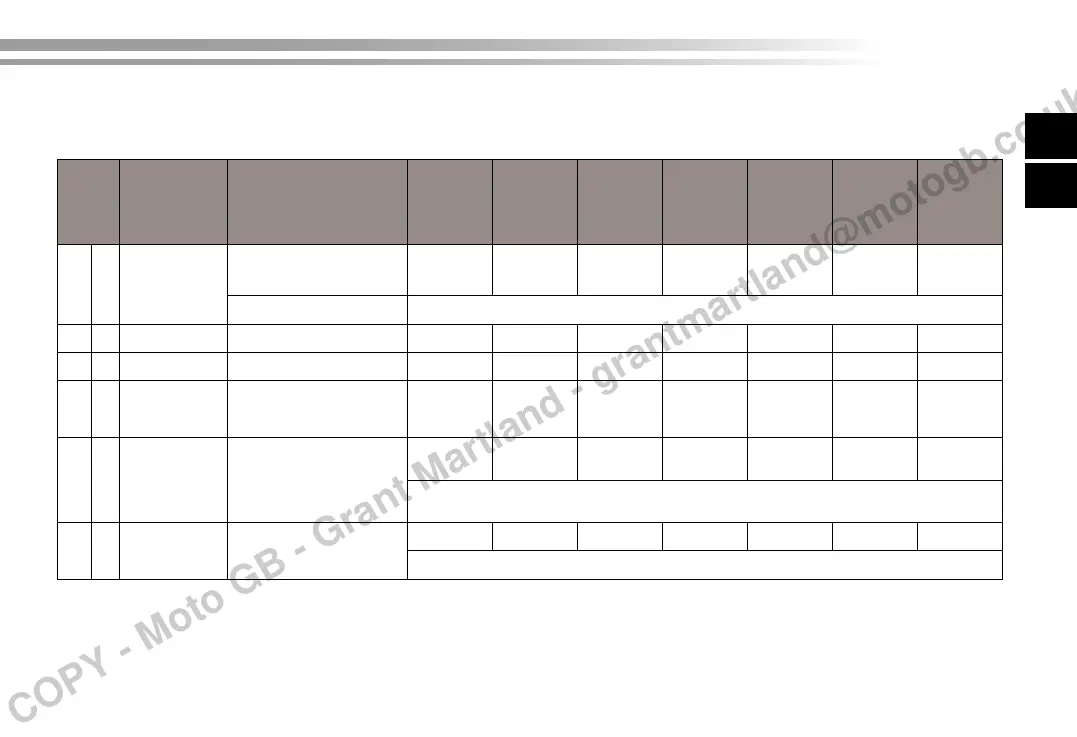 Tabella manutenzione generale e lubricazione