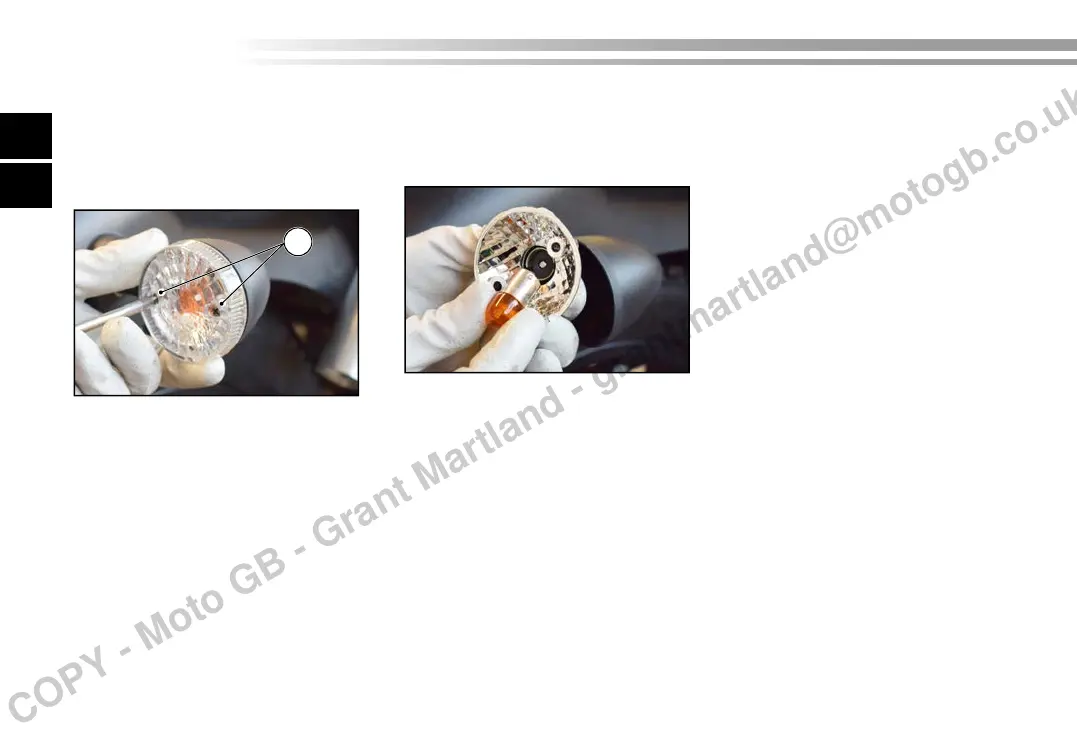 2. Togliere la lampada bruciata premen-