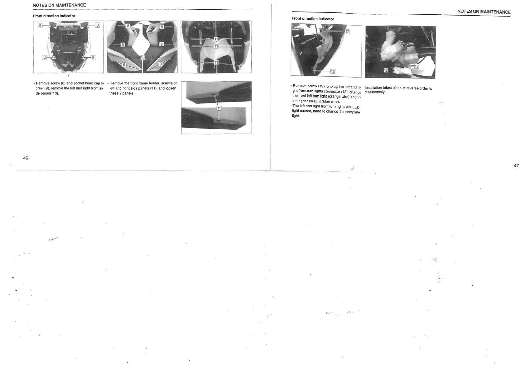 - Remove screw (8) and socket head cap s- - Remove the front frame fender, screws of