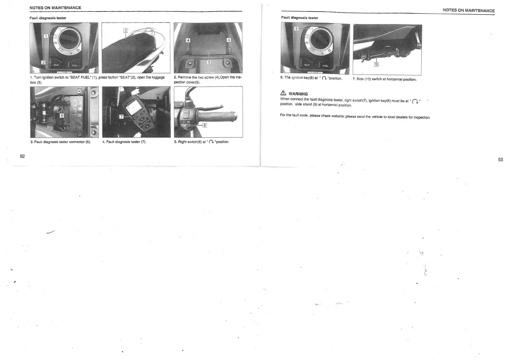 When connect the fault diagnosis tester, right switch(?), ignition key(8) must be at "0 "