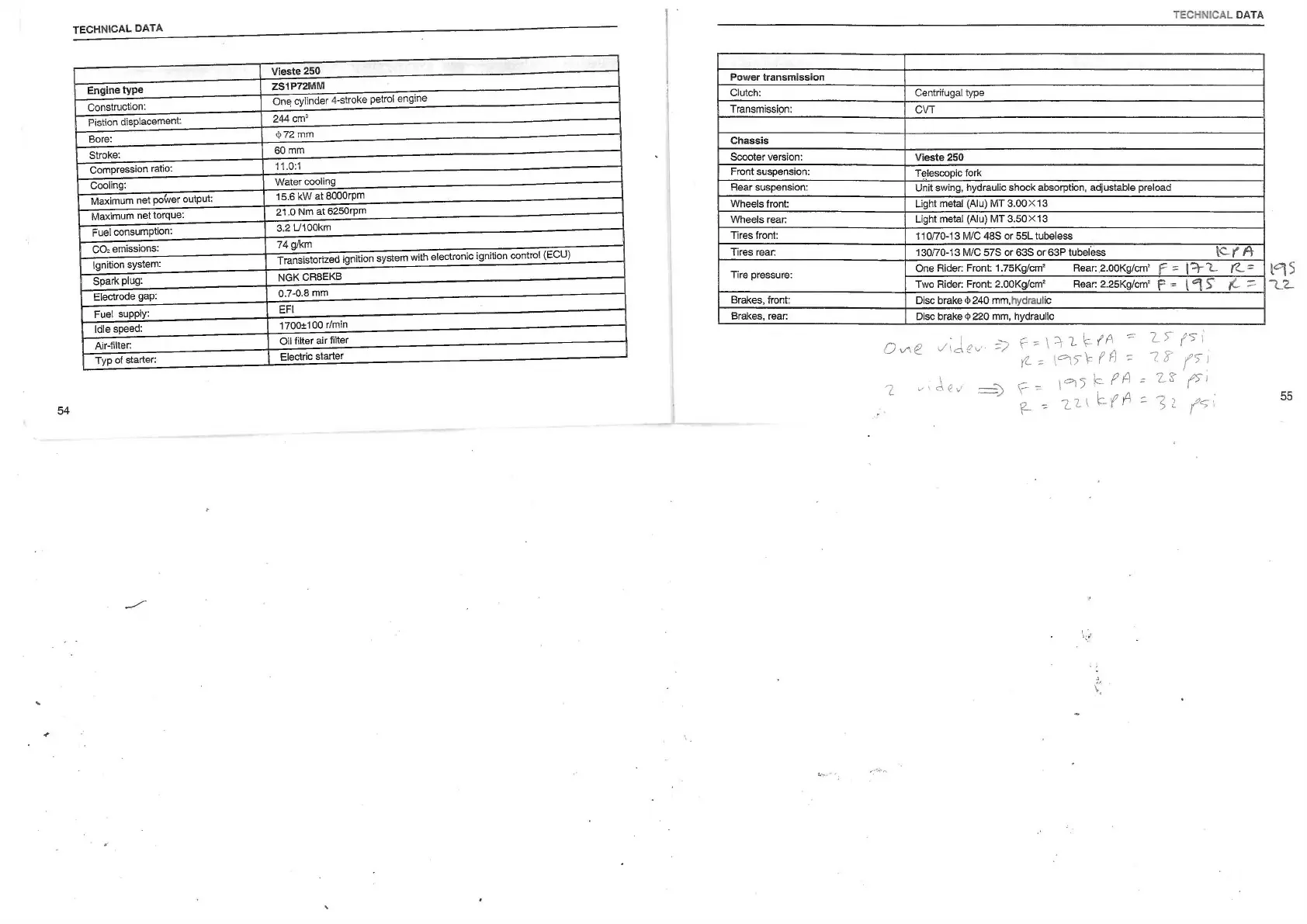 Two Rider: Front: 2.00Kg/cm'