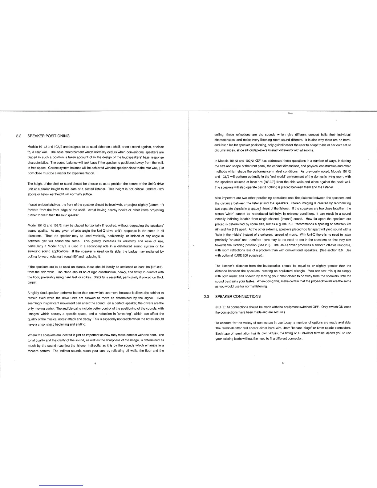 KEF 101/2 - Optimal Speaker Positioning; Speaker Connection Procedures