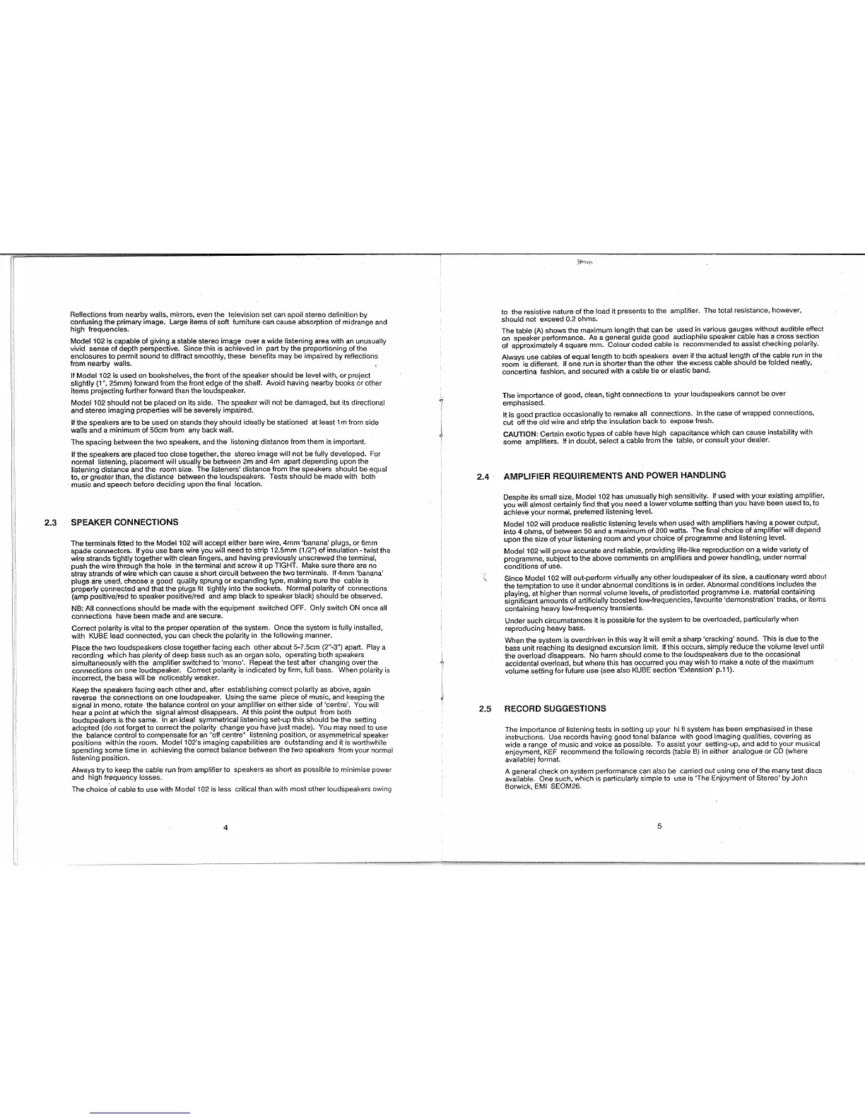 KEF 102 - 2.3 SPEAKER CONNECTIONS; 2.4 AMPLIFIER REQUIREMENTS; 2.5 RECORD SUGGESTIONS