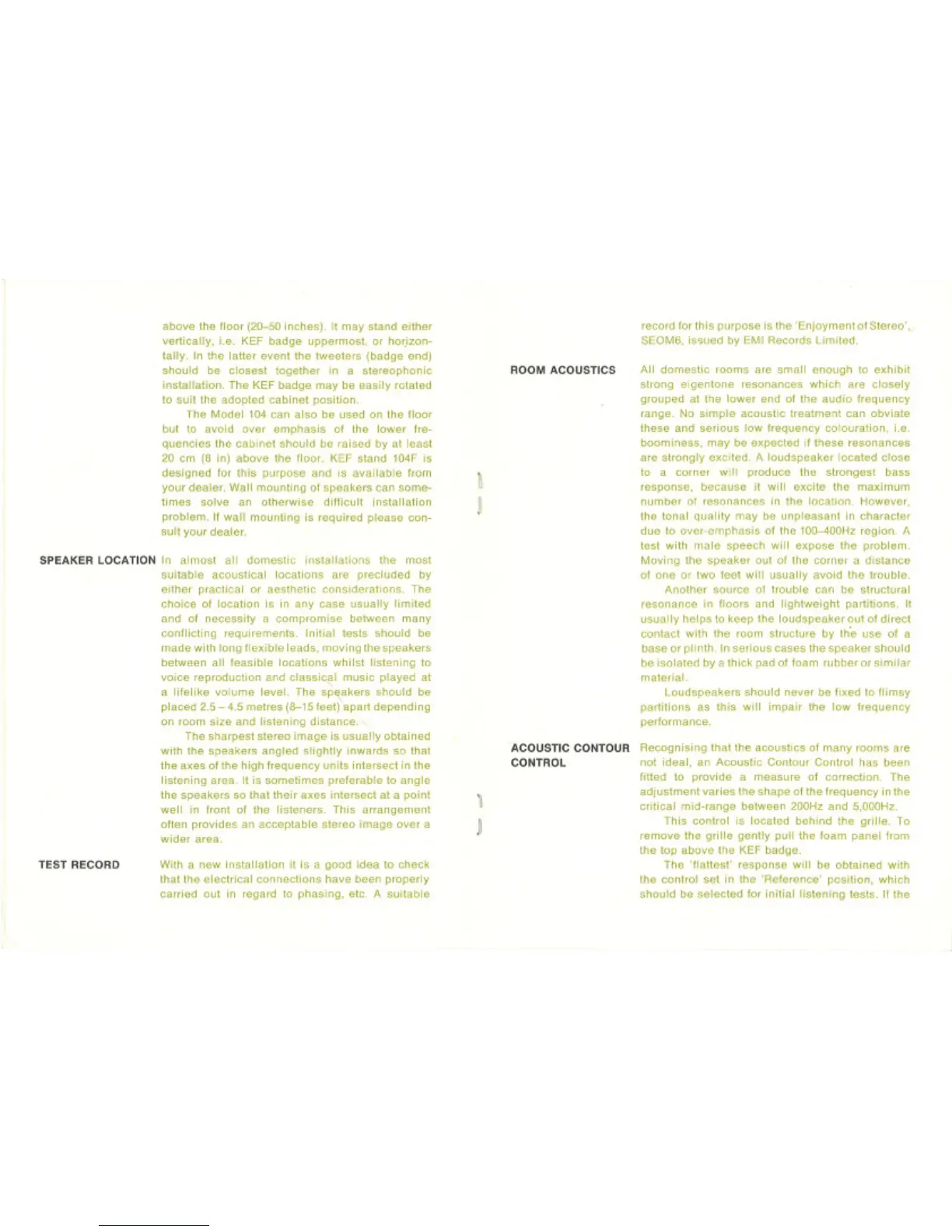 KEF 104 - Speaker Location Advice; Room Acoustics Considerations; Acoustic Contour Control