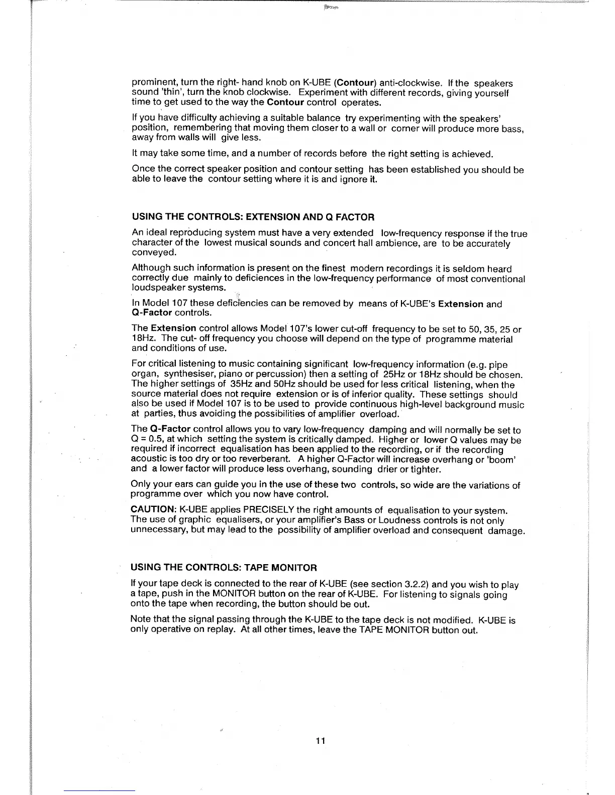 KEF 107 - K-UBE Extension and Q Factor Controls; K-UBE Tape Monitor Operation