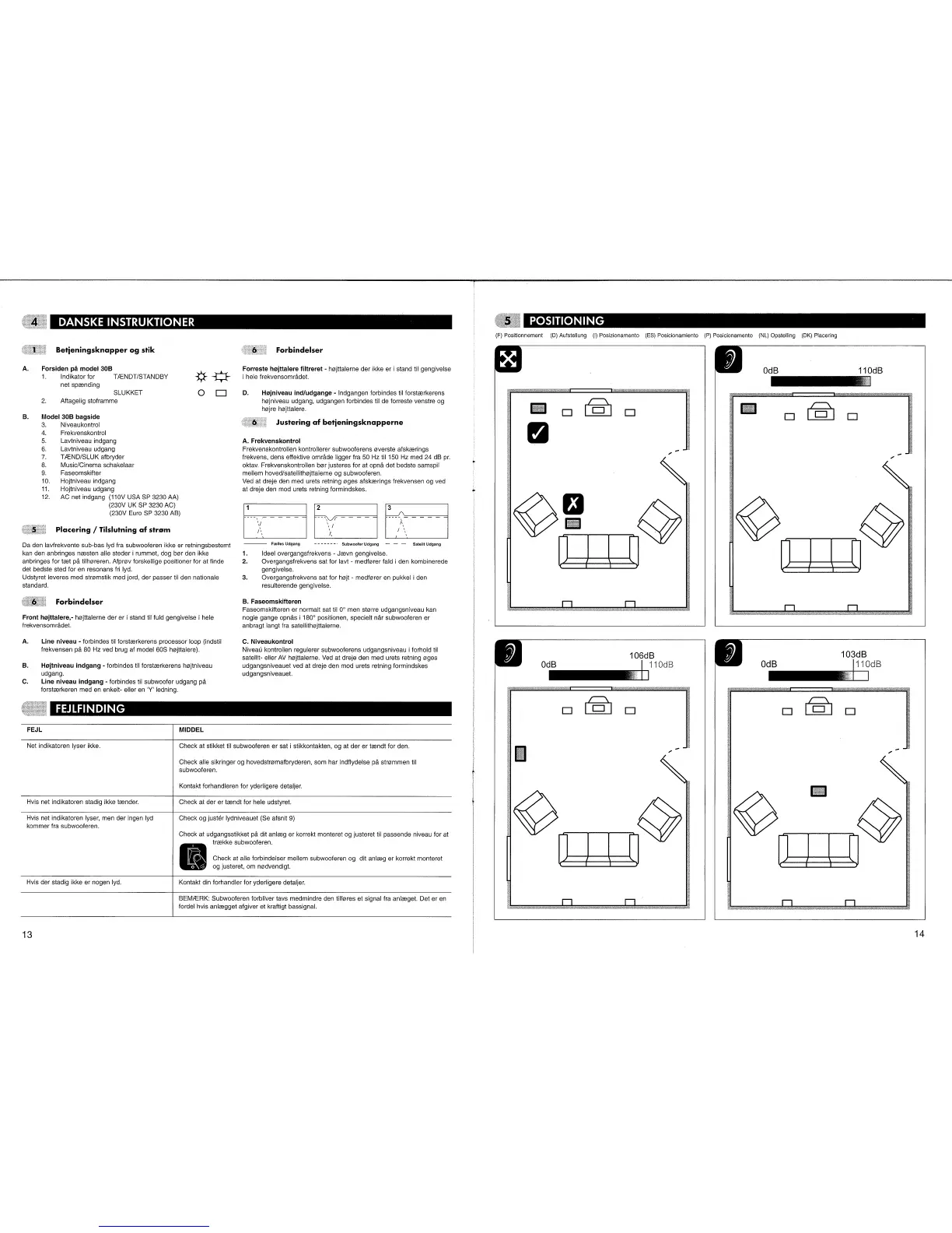 KEF 30B - POSITIONING; Speaker Placement Guidelines; Phase Switch Adjustment; Level Control Adjustment