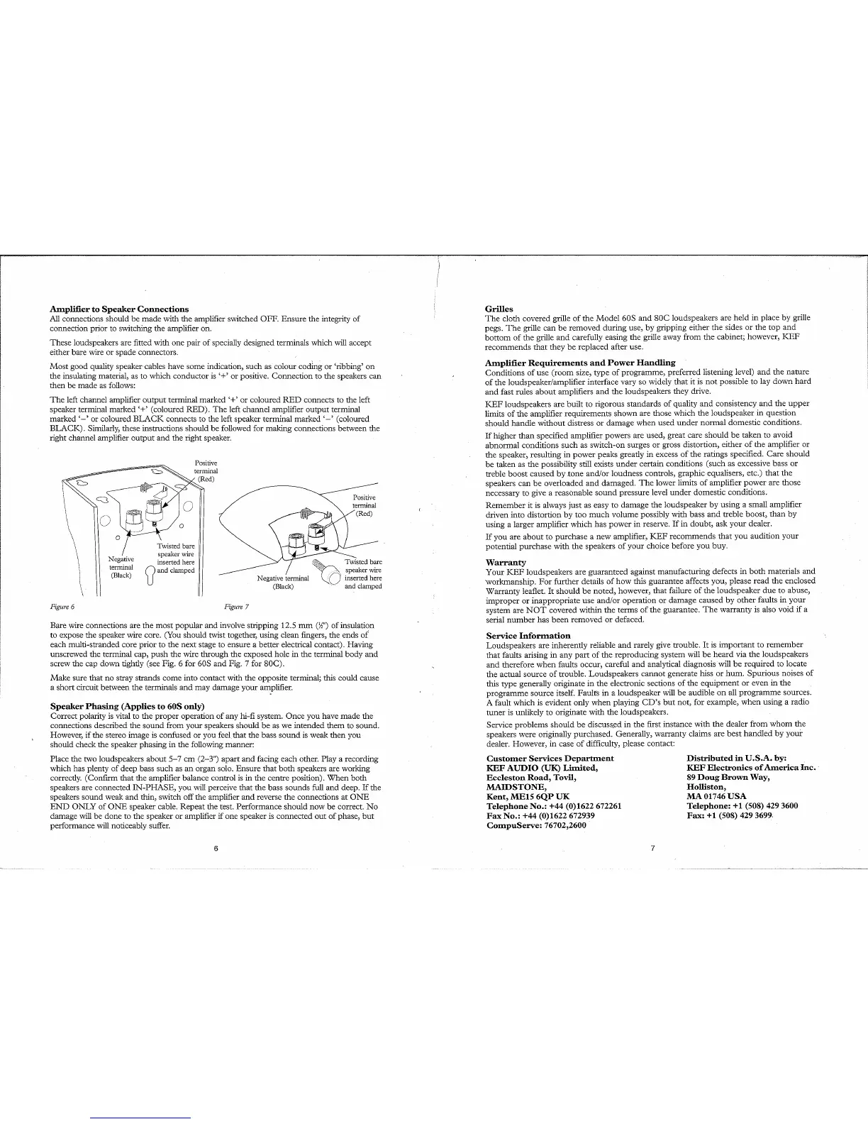 KEF 60S - Connections and Amplifier Requirements; Amplifier to Speaker Connections; Speaker Phasing; Grilles