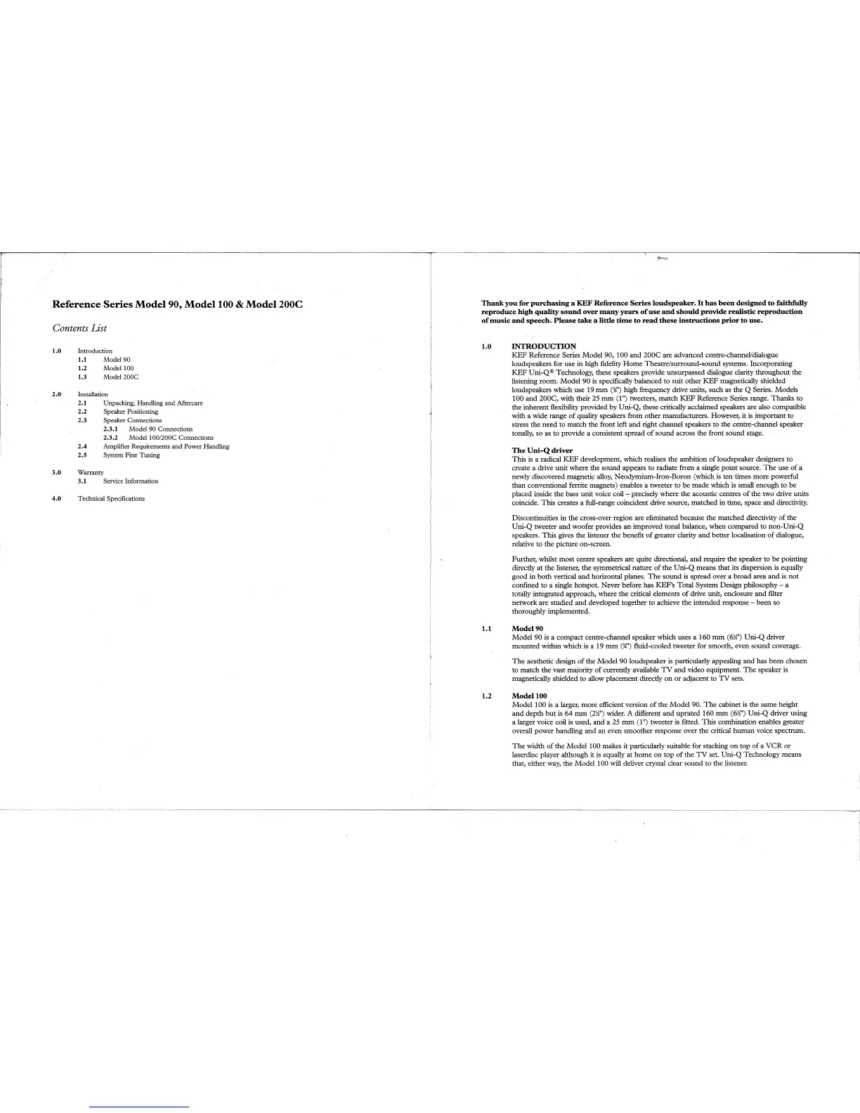 KEF 90 - Introduction; Model 90; Model 100; Model 200 C