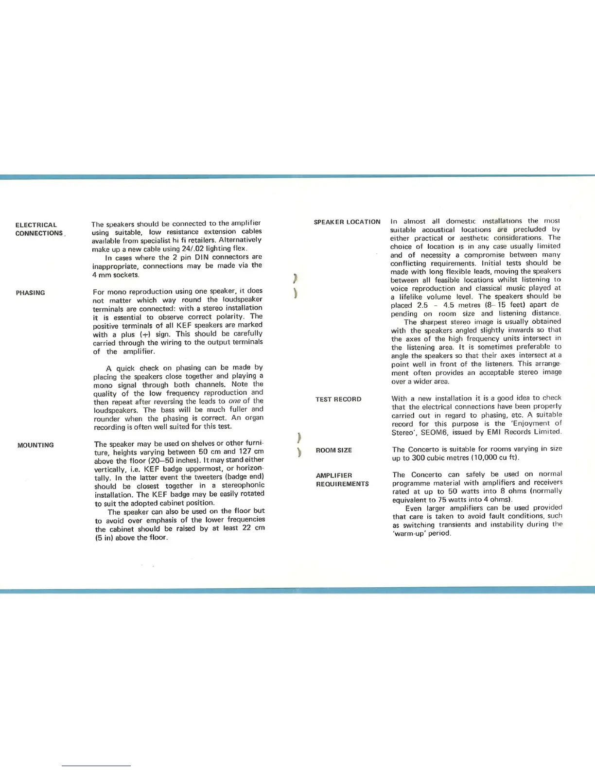 KEF Concerto - Installation and Operation Guide; Electrical Connections; Phasing Check; Mounting and Placement
