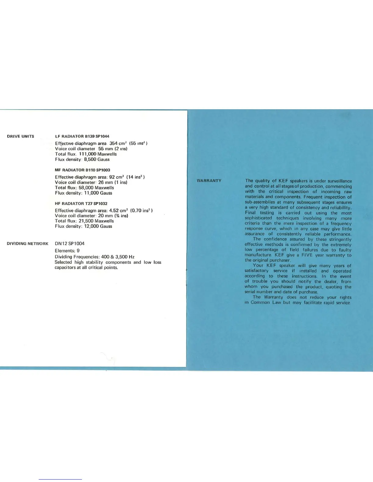 KEF Concerto - Drive Units and Warranty; Drive Unit Specifications; Dividing Network Details; Warranty and Service