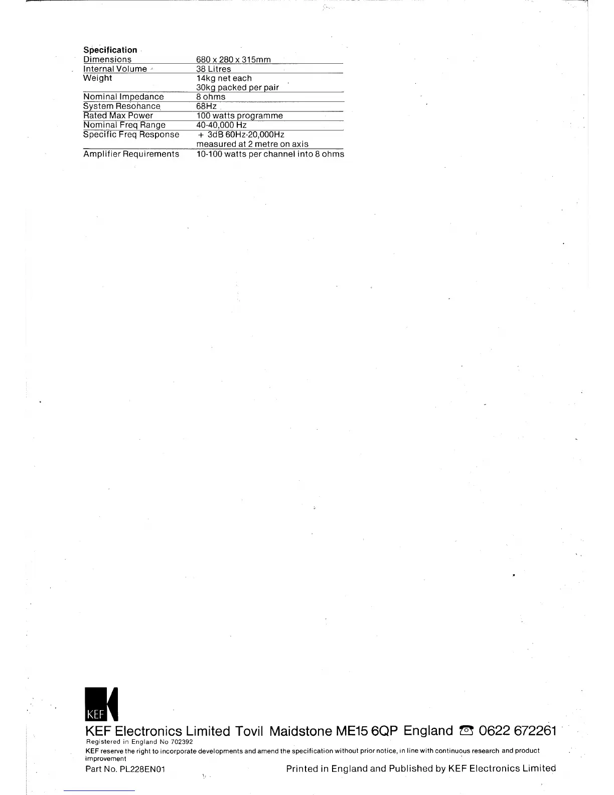 KEF Concord IV - Product Specifications