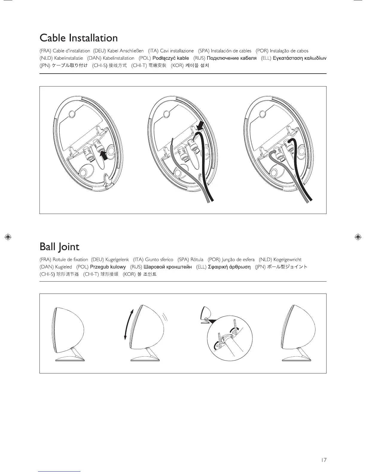 KEF E305 - Cable Installation; Connecting Speaker Cables; Ball Joint; Ball Joint Assembly