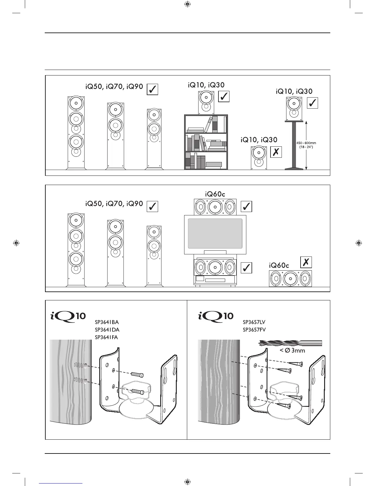 KEF iQ70 - Speaker Positioning; General Placement Guidelines; Wall Mounting Instructions