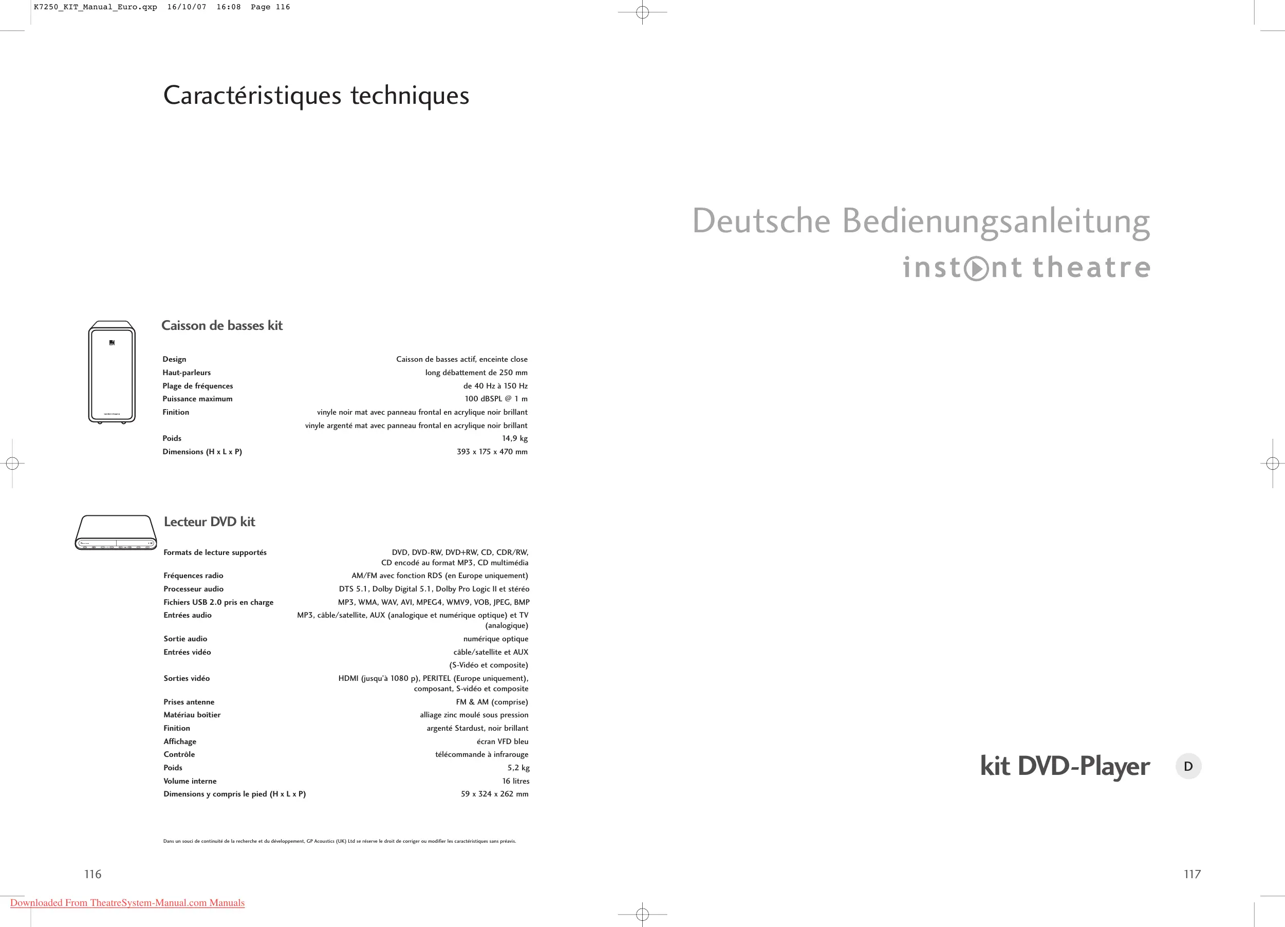 Dans un souci de continuité de la recherche et du développement, GP Acoustics (UK) Ltd se réserve le droit de corriger ou modifier les caractéristiques sans préavis.