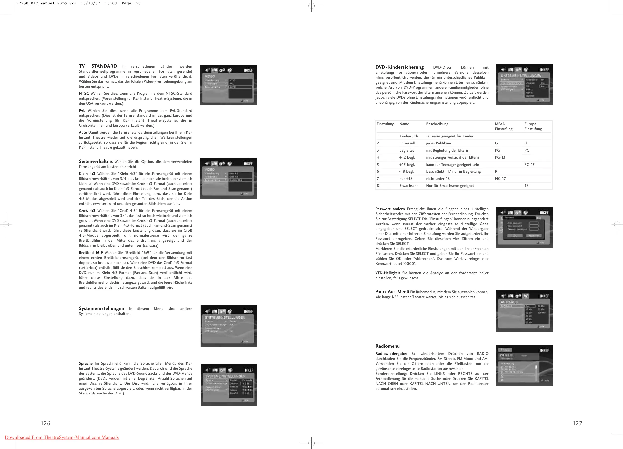 entsprechen. (Voreinstellung für KEF Instant Theatre-Systeme, die in