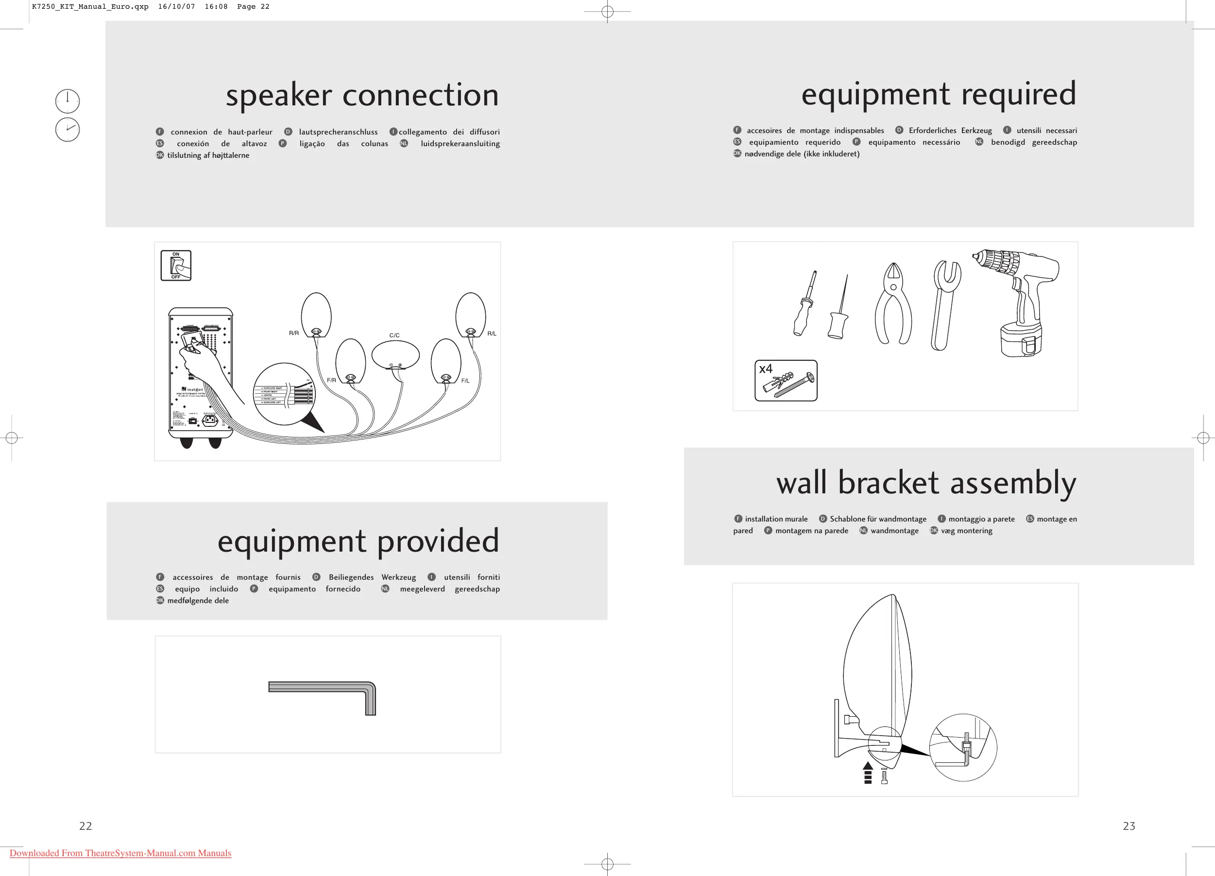 installation murale Schablone für wandmontage montaggio a parete montage en