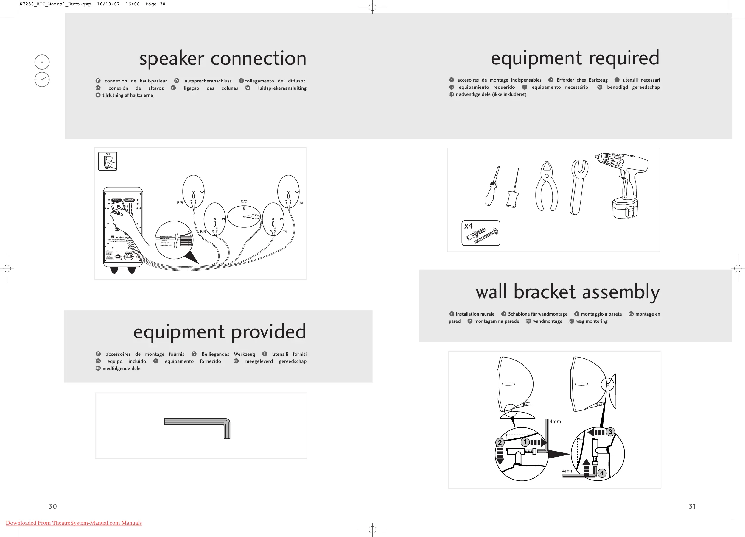 installation murale Schablone für wandmontage montaggio a parete montage en
