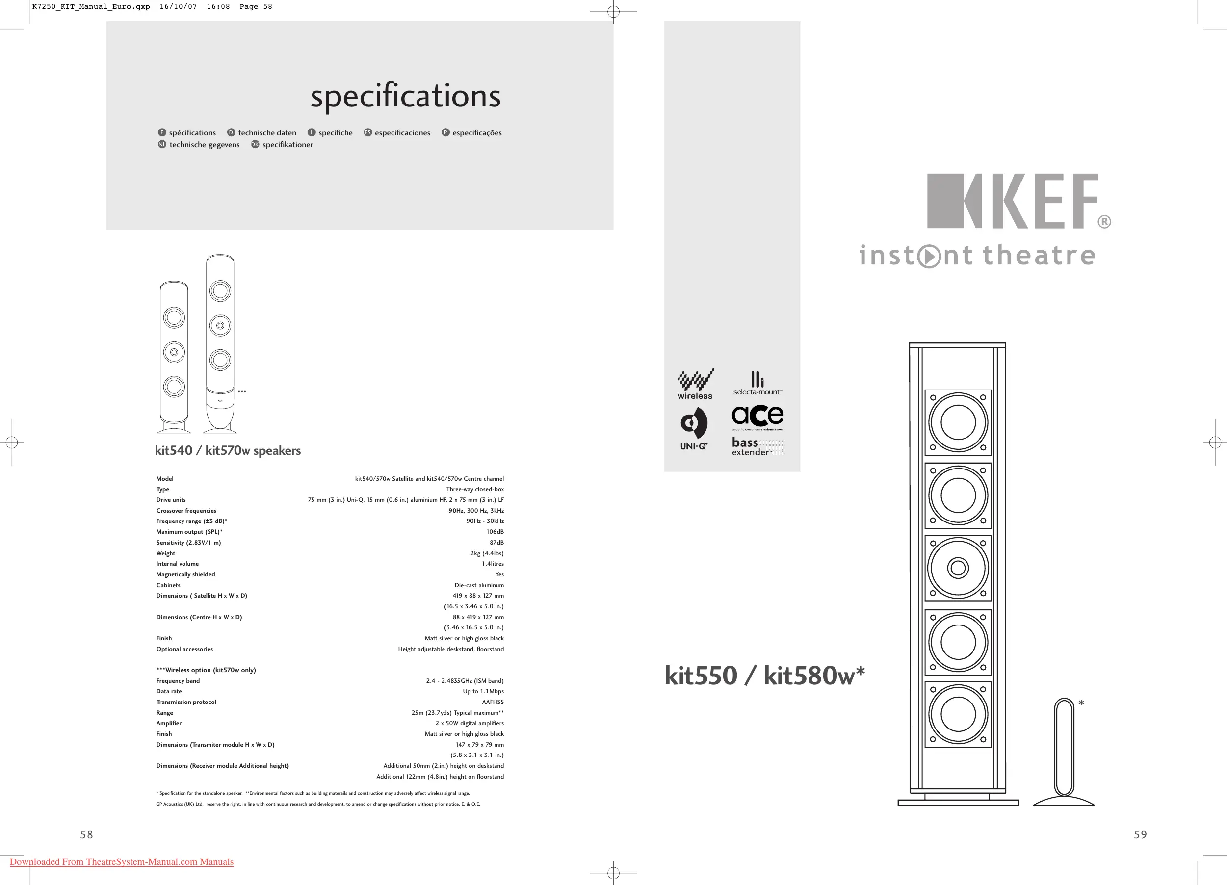 Model kit540/570w Satellite and kit540/570w Centre channel