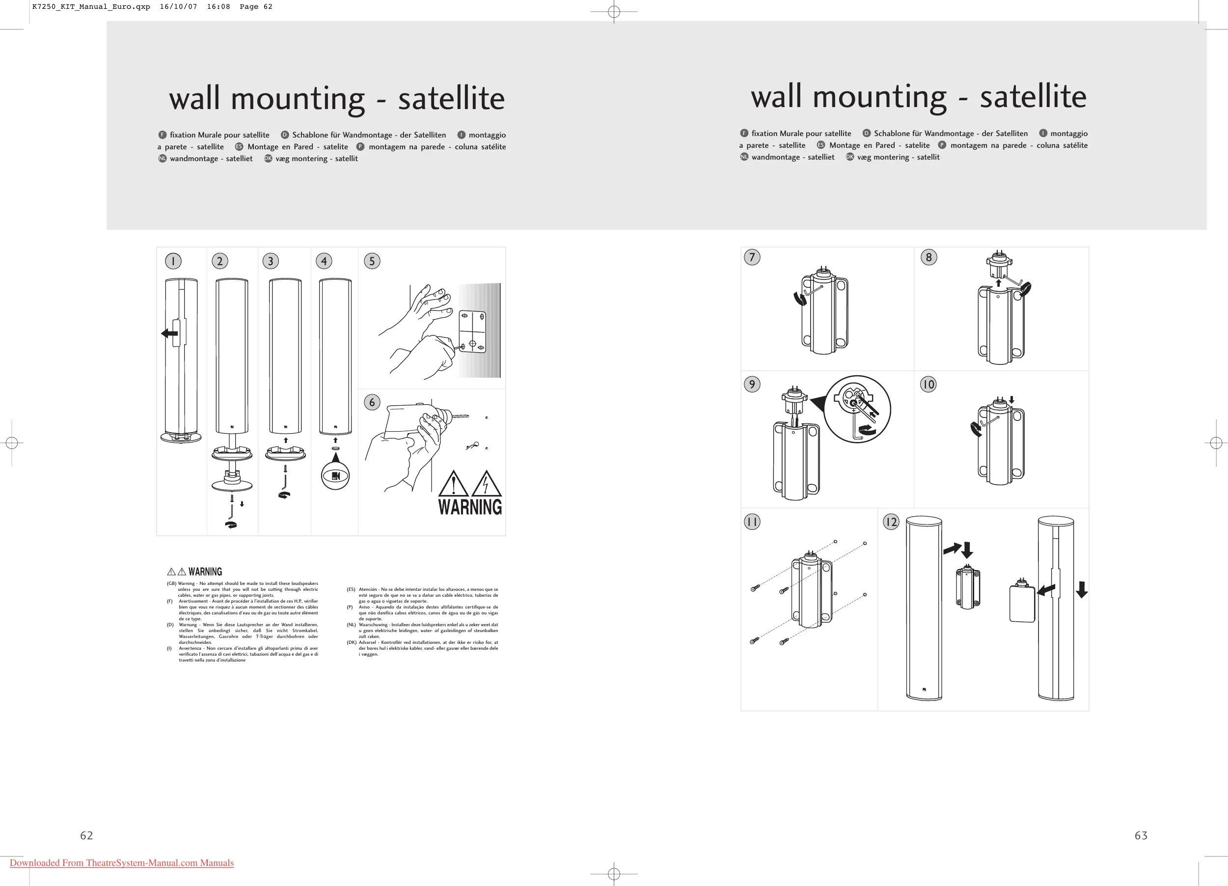 (D) Warnung - Wenn Sie diese Lautsprecher an der Wand installieren,