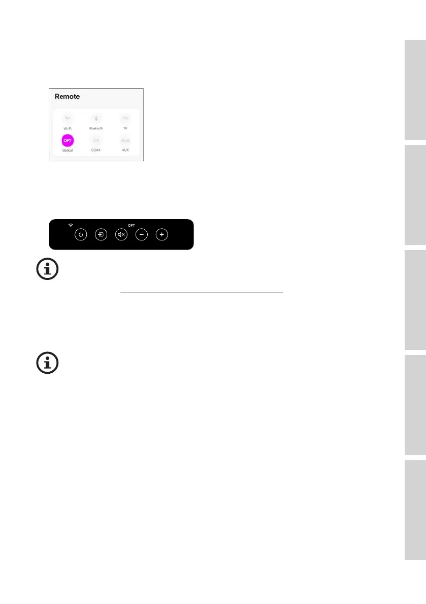 • In the KEF Connect App, tap the Optical Mode button (OPT) to switch to Optical