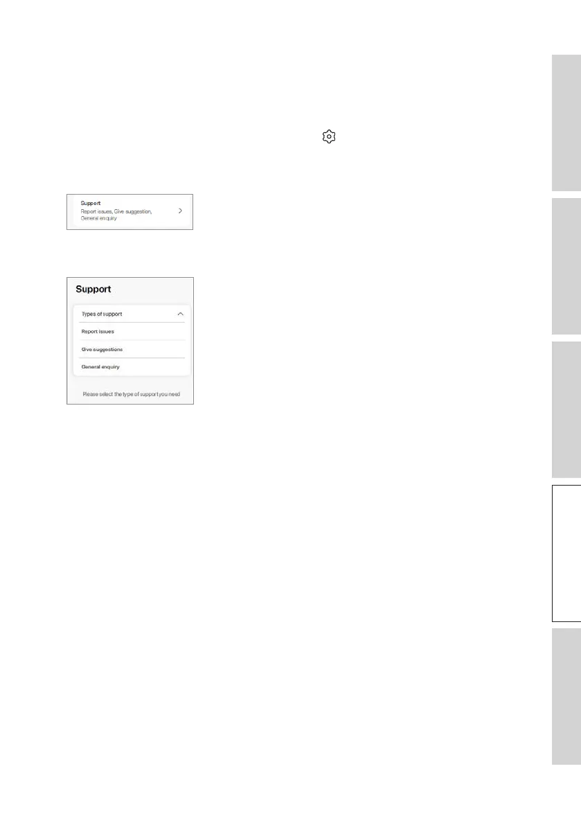 This menu allows you to report issues, give suggestions and make general enquiries.