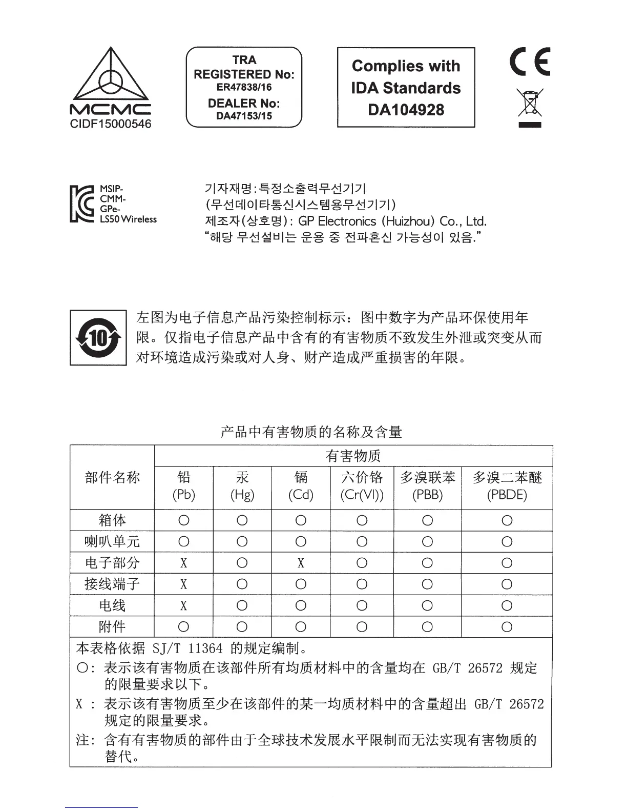 KEF LS50 - Hazardous Substances; Material Content Disclosure
