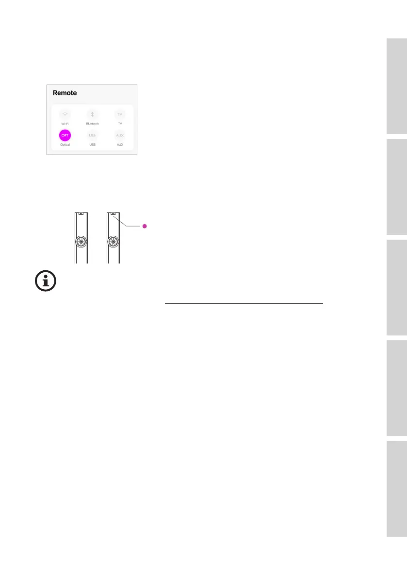 • In the KEF Connect App, tap the Optical Mode button (OPT) to switch to Optical
