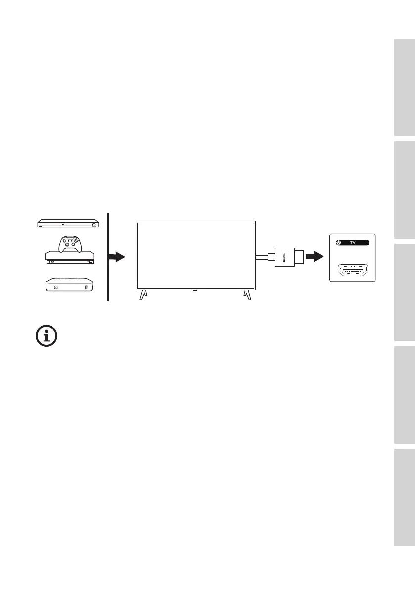 Connect the HDMI output port of your TV and the TV port (V) on the back panel of