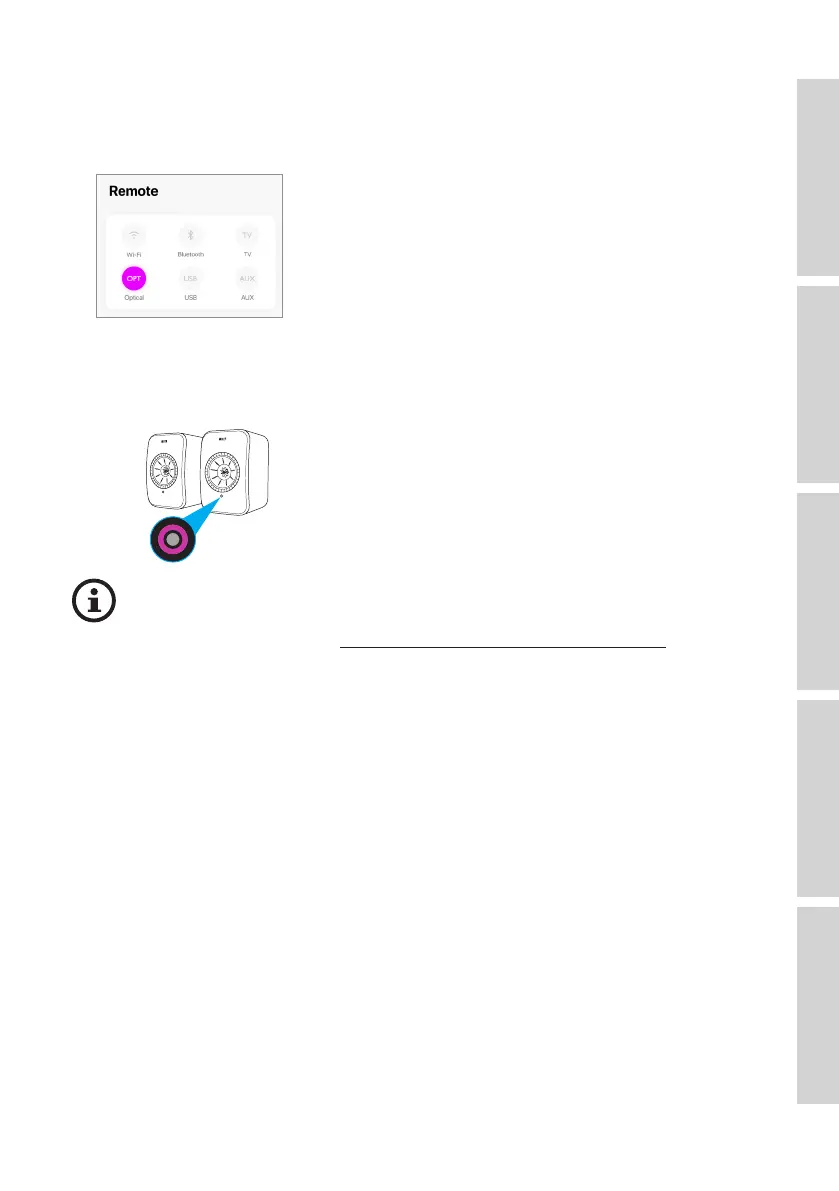• In the KEF Connect App, tap the Optical Mode button (OPT) to switch to Optical