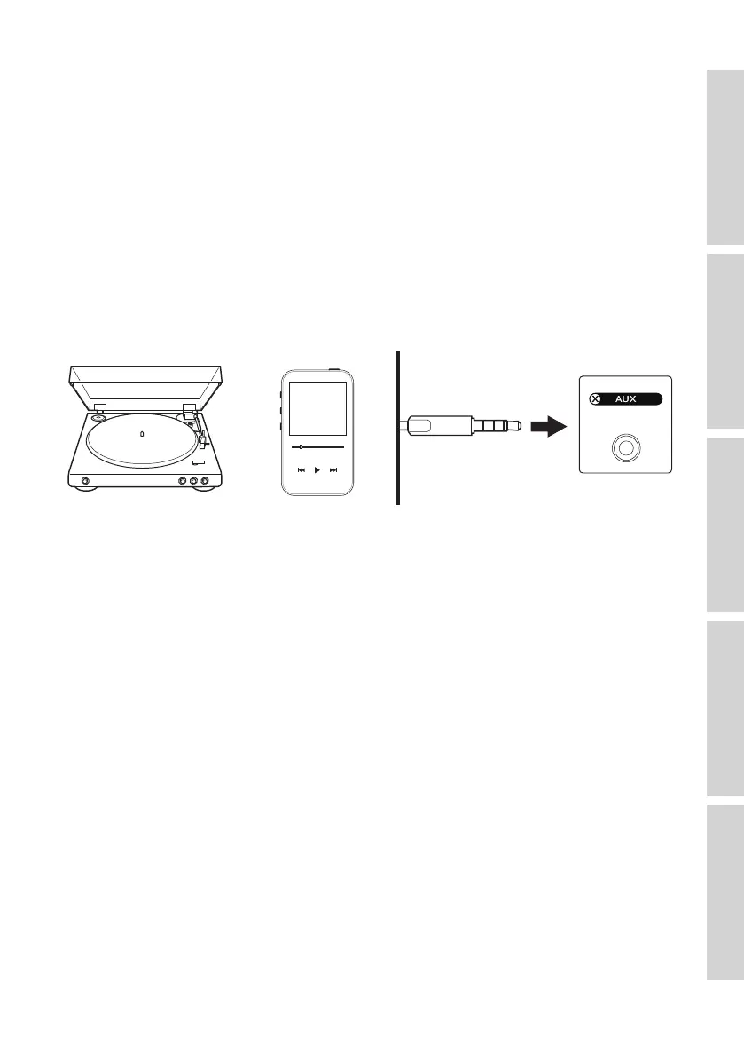 Connect the audio output jack of your device and the auxiliary input jack (X) on the