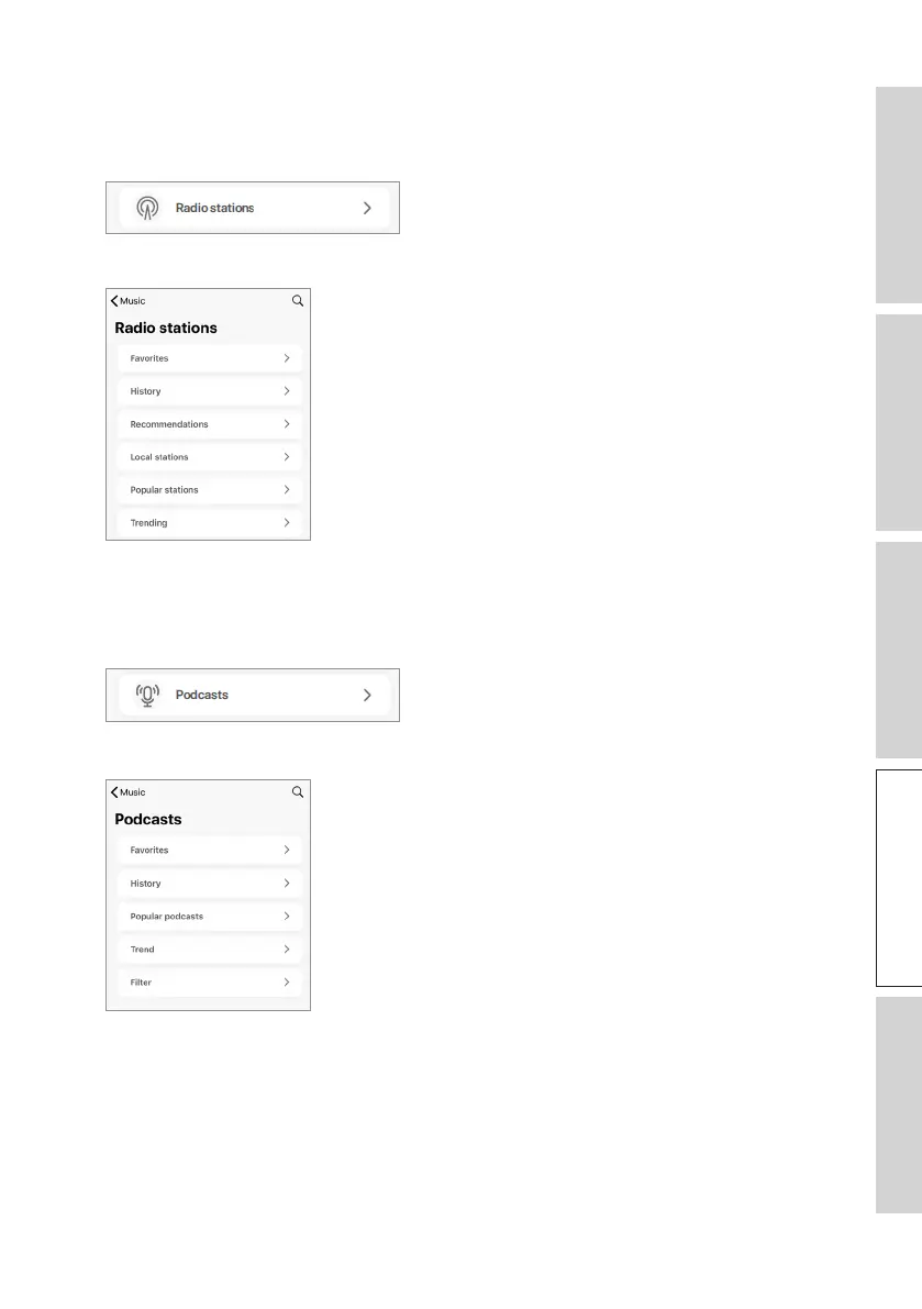1. To access podcast contents, tap “Podcasts” under “Live Stream” in the KEF Connect