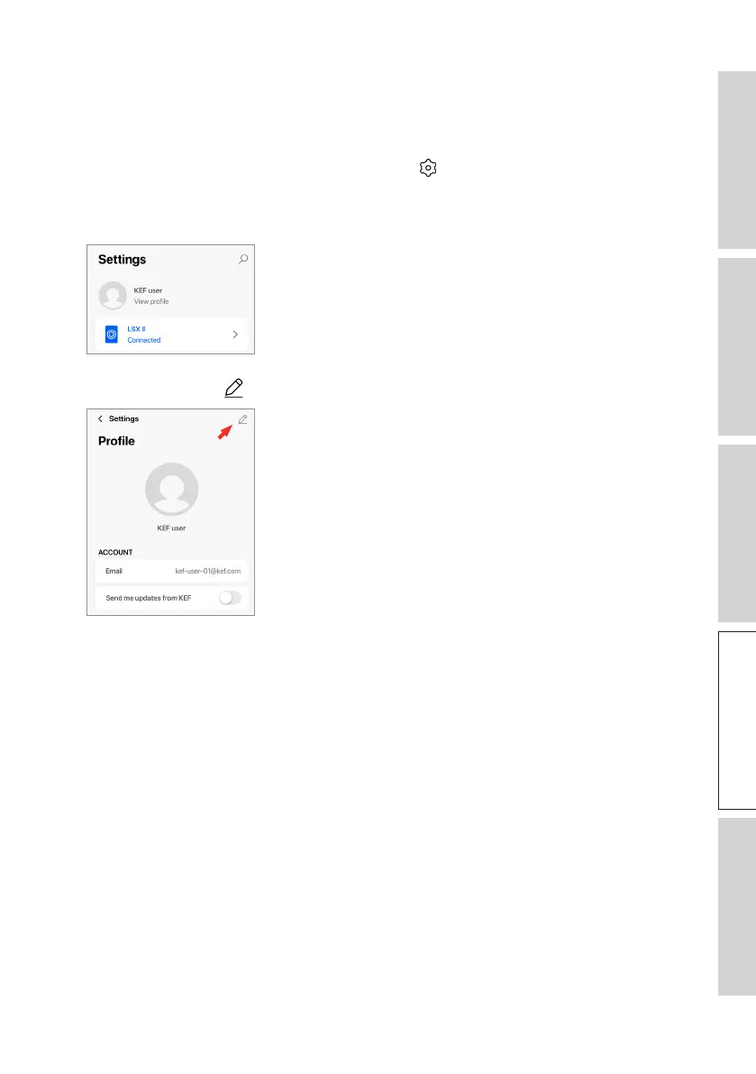 1. In the KEF Connect App, tap the Setting icon ( ) at the bottom of the Home