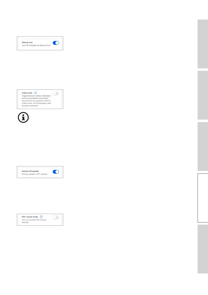 This setting enables the start up tone to be muted when the speakers are turned on.