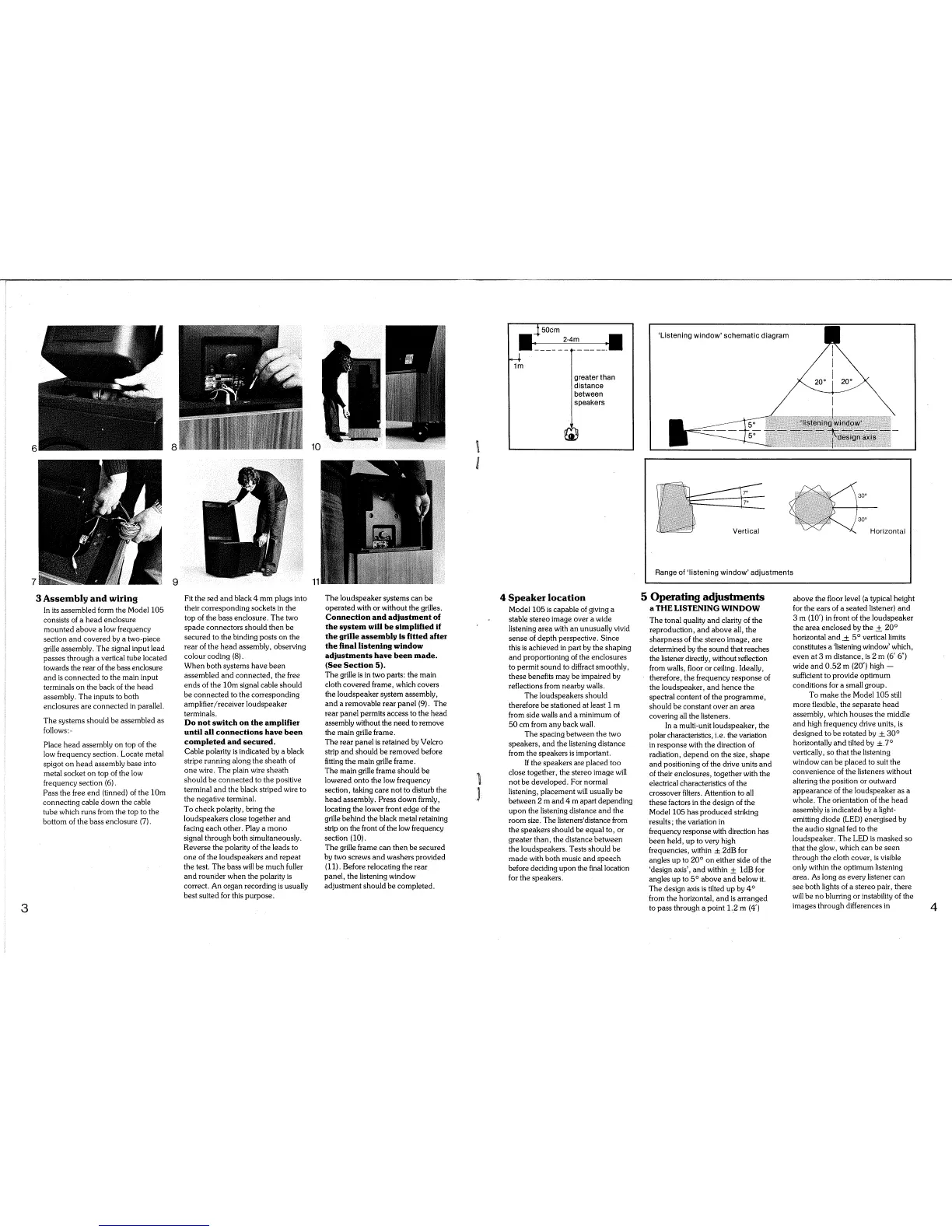 KEF Model 105 - Assembly and Speaker Placement; Assembly and Wiring; Speaker Location Guidance